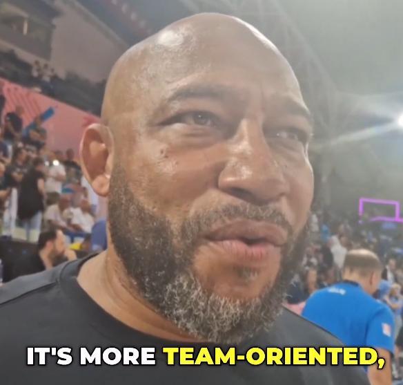 哈姆在场边接受采访时被问到了他对字母哥在雄鹿队与在希腊队的不同点的看法。