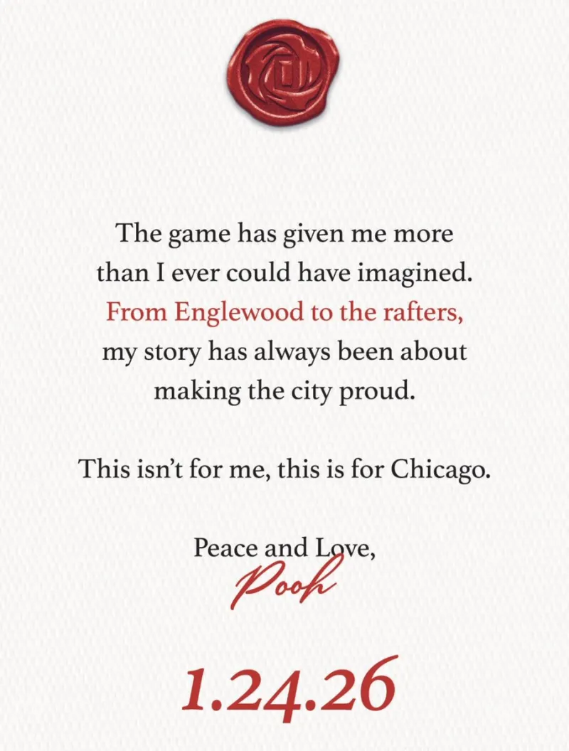 据悉,公牛将在2026年1月25日(北京时间)为德里克-罗斯举行球衣退役仪式。